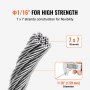 Rust and Corrosion Resistance: VEVOR 66 ft (20.2 m) steel cable is made of premium T304 stainless steel with added molybdenum that comes with a better performance on its breaking strength and anti-oxidation. It is great for outdoor installation that requires a tough quality and longer lifespan.