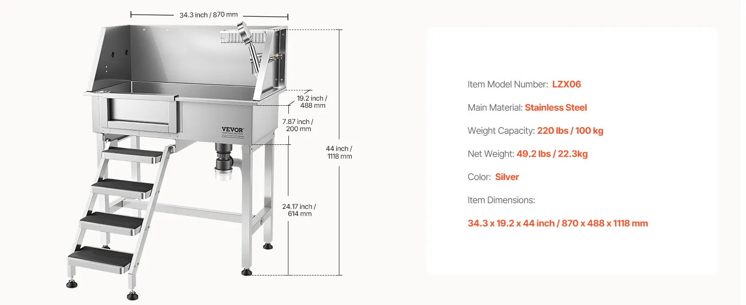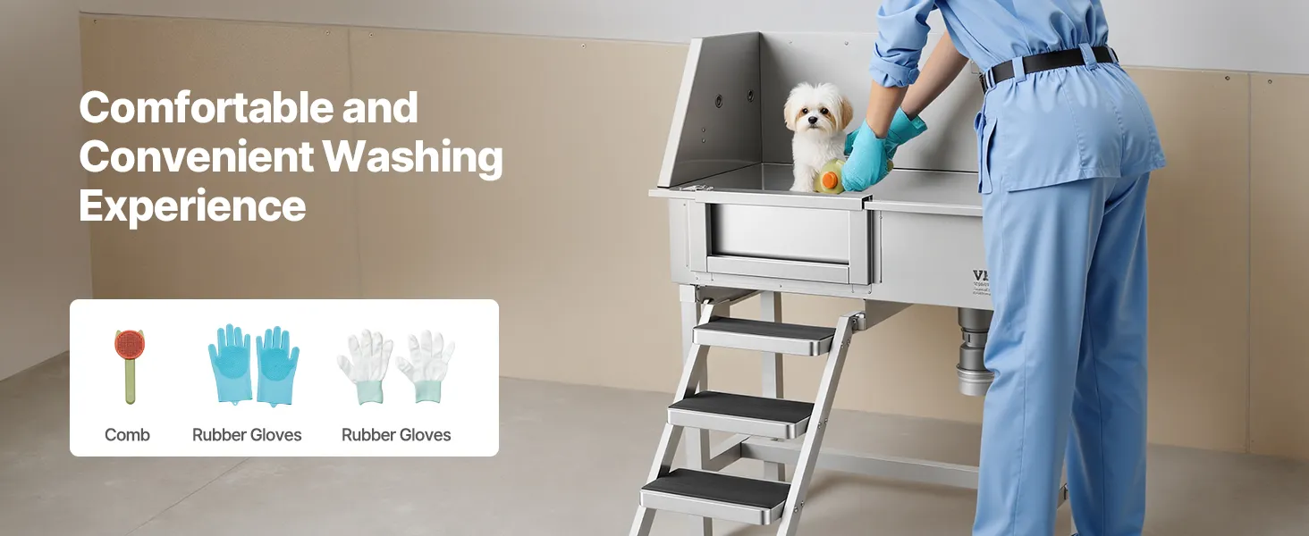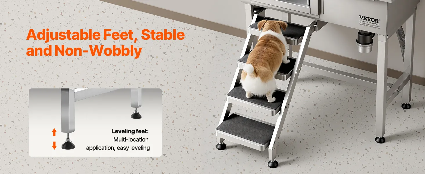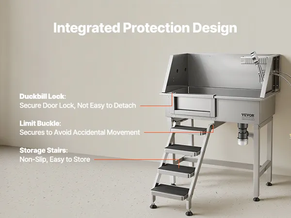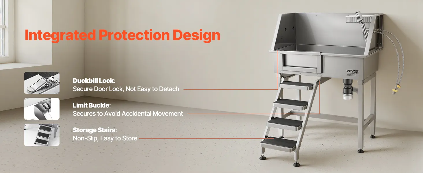 Stable Setup: An upgraded sealing structure and stairs with limit holes help keep the dog sink steady when pets step in and out. The drainage kit supports smooth water flow, helping reduce bad smell buildup and water remaining in the tub during bath