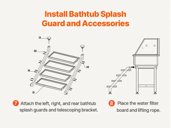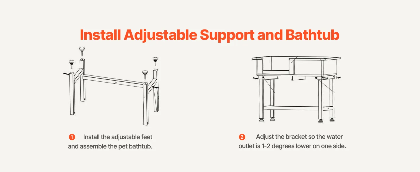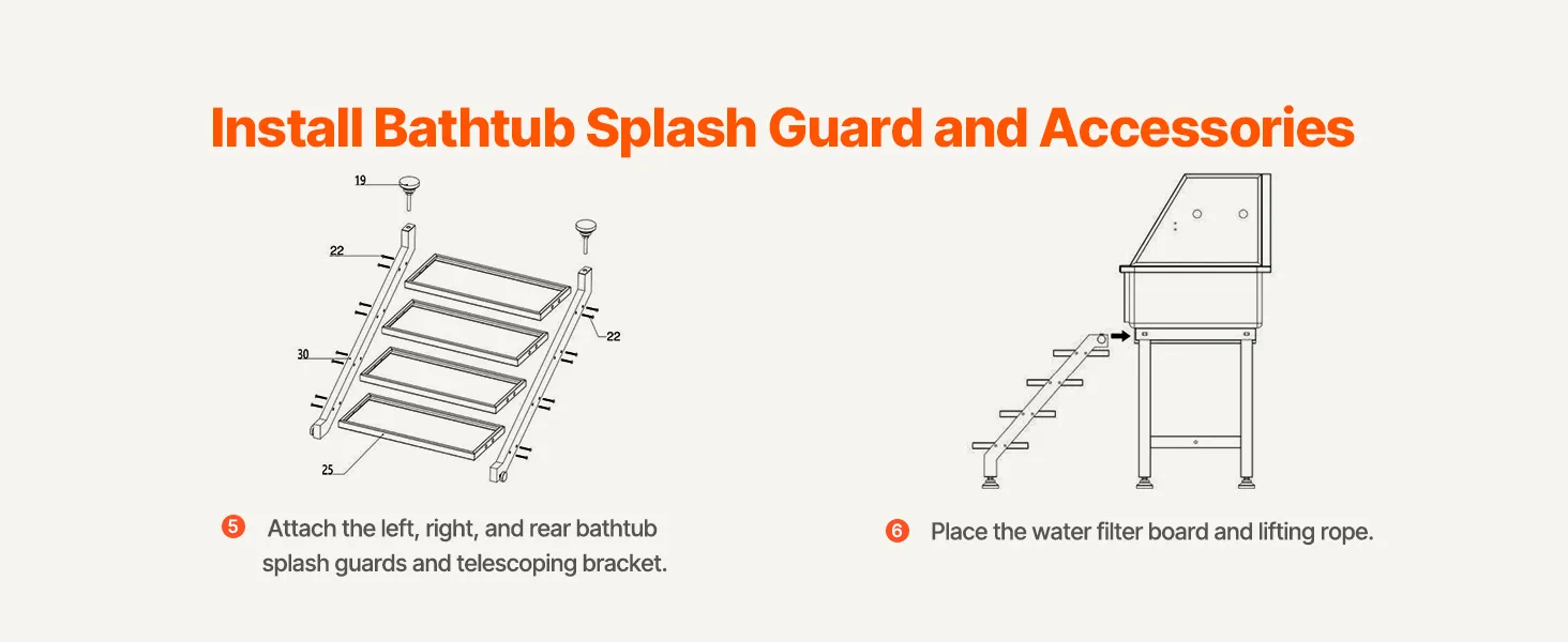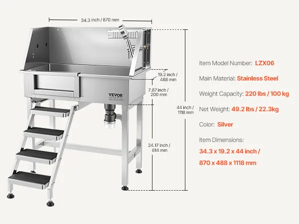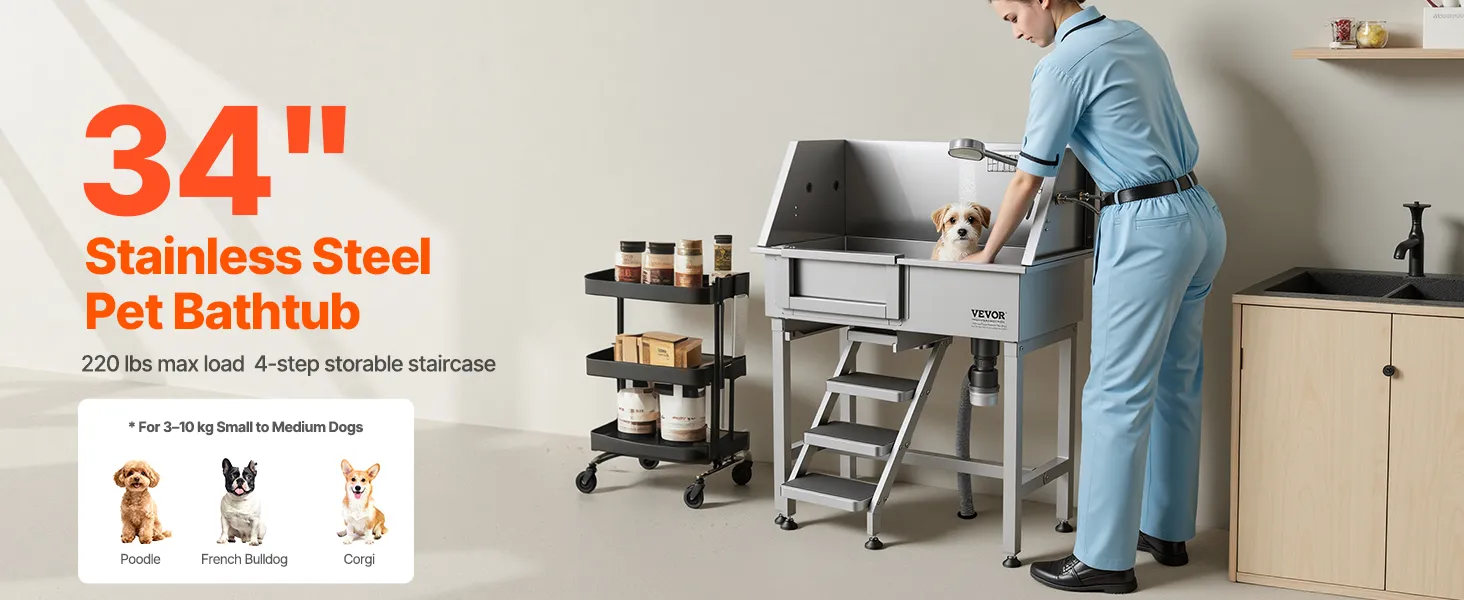 Stable Setup: An upgraded sealing structure and stairs with limit holes help keep the dog sink steady when pets step in and out. The drainage kit supports smooth water flow, helping reduce bad smell buildup and water remaining in the tub during bath