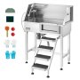 VEVOR 86.4 cm Dog Washing Station, Stainless Steel Pet Grooming Tub Bathtub, Professional Dog Wash Sink with Shower, Faucet, Soap Holder, Non-Slip Stairs Easy-Clean for Small Pets Cats (Right Door)