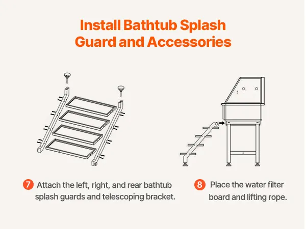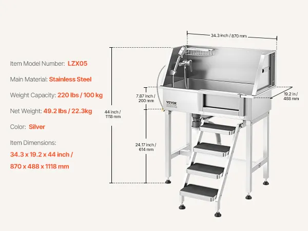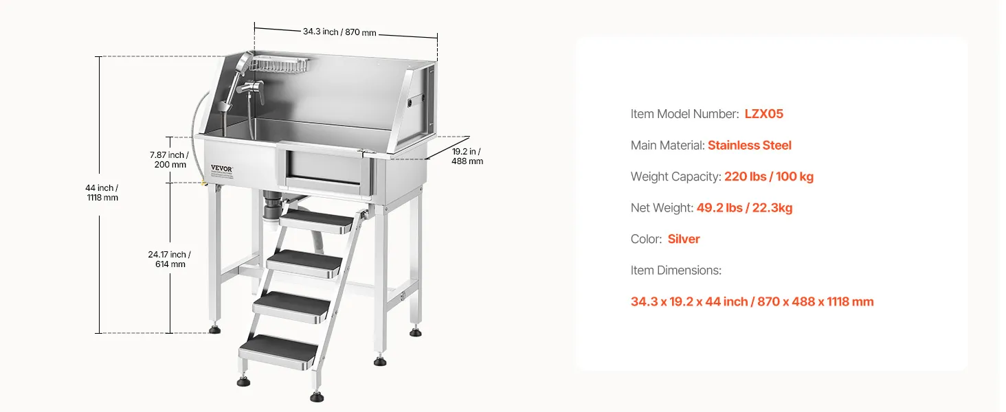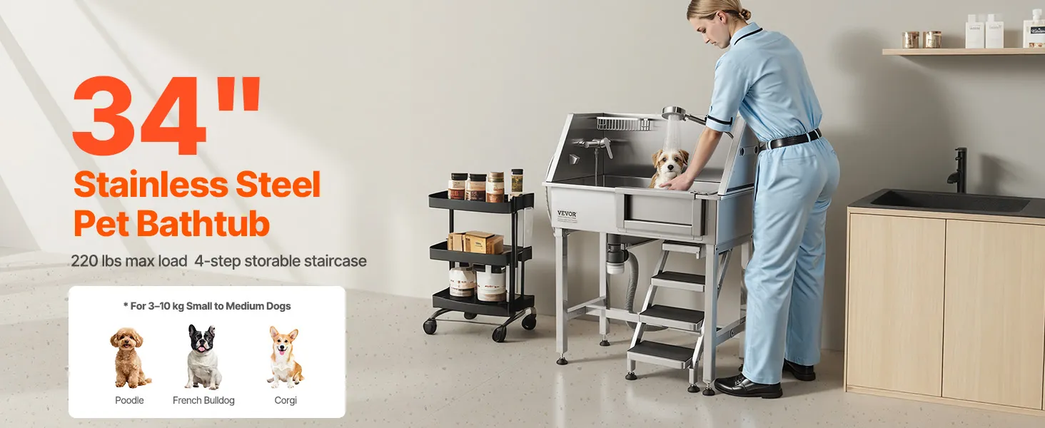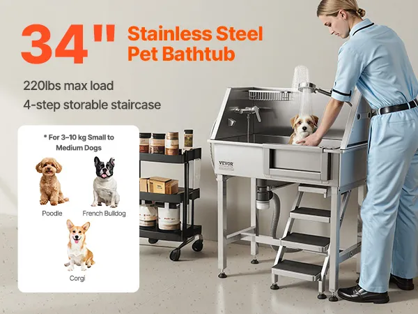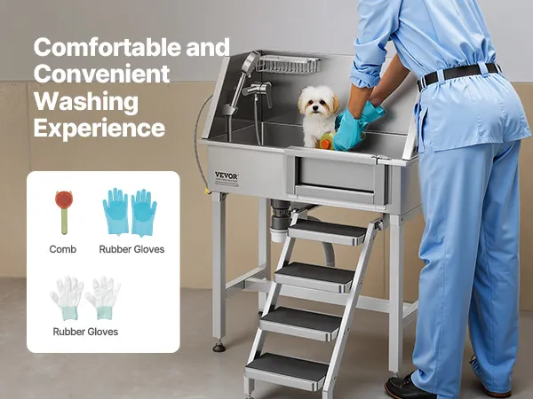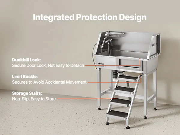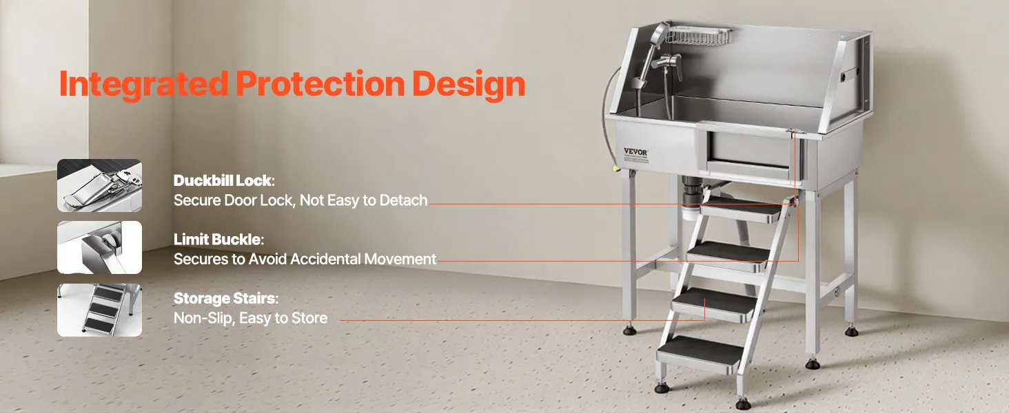 Stable Setup: An upgraded sealing structure and stairs with limit holes help keep the dog sink steady when pets step in and out. The drainage kit supports smooth water flow, helping reduce bad smell buildup and water remaining in the tub during bath