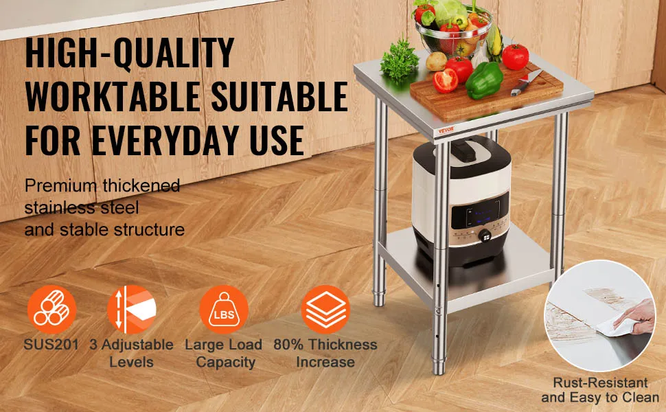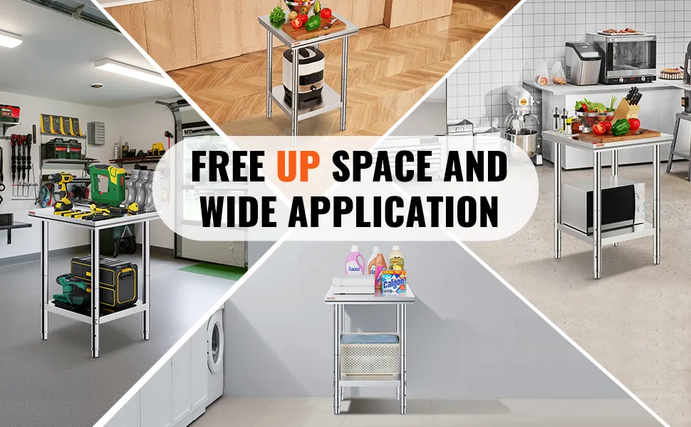 This table is great for both home and professional kitchens. It is versatile enough to meet different needs. This food prep table fits perfectly whether you cook at home or in a restaurant. It is a practical addition to any kitchen setup. The table's design is both functional and aesthetically pleasing. You can add utensils to your kitchen. Therefore, you can use it for both personal and commercial purposes. The table’s versatility makes it suitable for either personal or commercial use. You can use our versatile table in various settings. If you want to improve your kitchen, we recommend using this table!