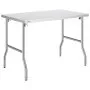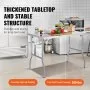 VEVOR folding commercial prep table with stainless steel legs and a flat surface.