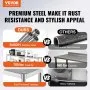 The VEVOR double overshelf is made from high-quality stainless steel. This ensures it is strong and long-lasting. The legs are sturdy and appear to be stainless steel as well. This durable construction makes it perfect for heavy-duty use. Its thick tabletop won't bend under heavy items. It is built to withstand daily wear and tear. Also resistant to corrosion, it is ideal for kitchens, restaurants, or workshops. Furthermore, the stainless steel material enhances the sleek appearance of any space.