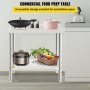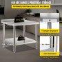 The VEVOR stainless steel prep table is built to last. It supports up to 440 lbs, making it an ideal heavy duty metal worktable. It is perfect for commercial kitchens. Our strong construction ensures it will withstand daily wear and tear. It can support multiple items without sagging or bending. That's why it’s a reliable workspace. You can place heavy appliances like mixers or slicers on it. Stability and structure ensure that it remains stable and secure. Its strength and durability make it an excellent choice for professional use. Even under heavy loads, it maintains its shape and structure. So, it will serve well in busy kitchen environments.