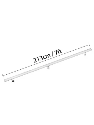 This hand railing kit spans 7ft length, and it can be used as a grab bar when people up or downstairs. High-quality aluminum alloy material, powder-coated surface, and offers a modern look that matches your room decoration. Quick to install, and sent with all devices.