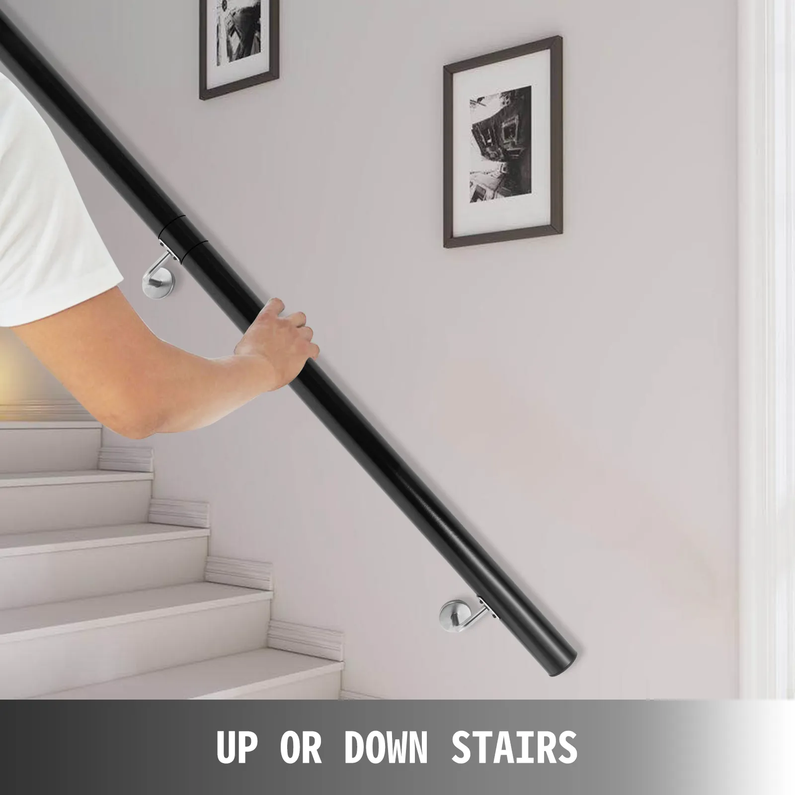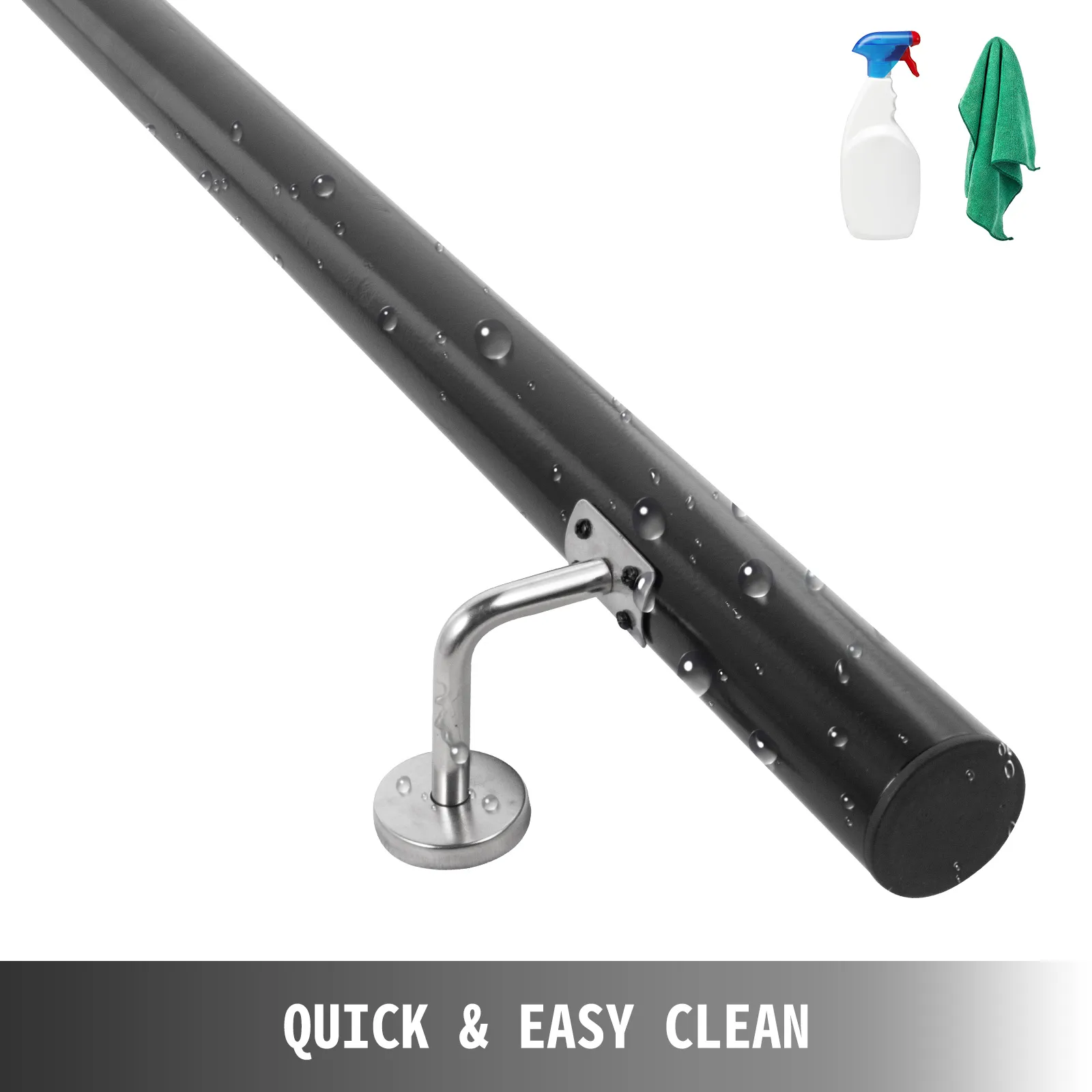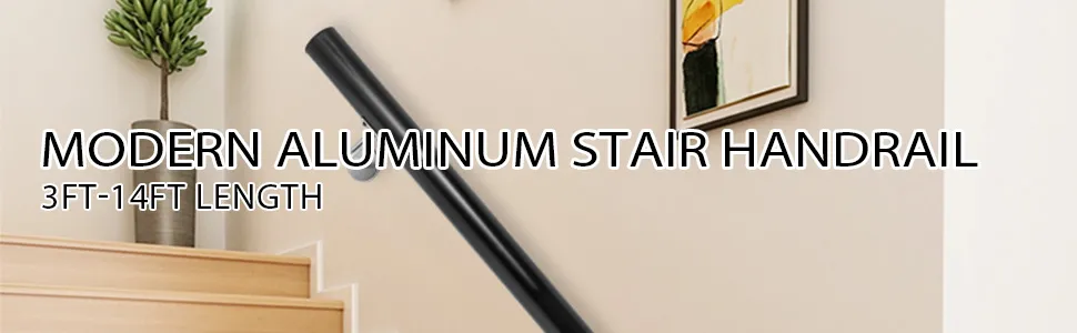 【HIGH-QUALITY MATERIAL】- Length: 7ft; Color: Black; Tube Diameter: 1.96"; Tube Thickness: 2 mm; This stair rail is made of aluminum alloy, it is powder-coating on the surface for corrosion-resistant & not to hurt your fingers. Modern style is easy to match room decor.