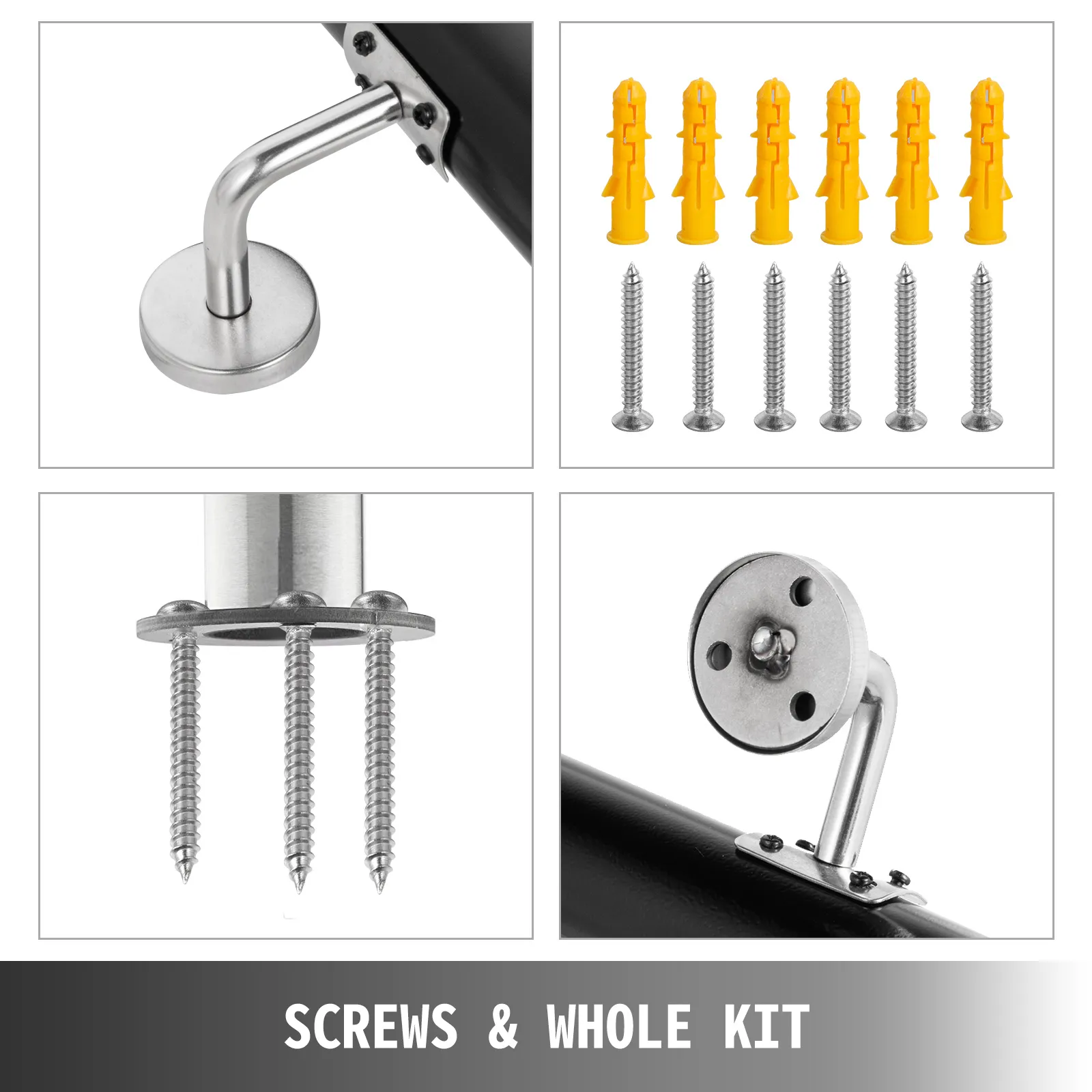 This hand railing kit spans 7ft length, and it can be used as a grab bar when people up or downstairs. High-quality aluminum alloy material, powder-coated surface, and offers a modern look that matches your room decoration. Quick to install, and sent with all devices.