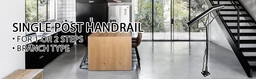 This single post handrail offers you a grab bar when up and downstairs. It is suitable for 1 or 2 steps. High-strength steel material and powder-coated surface provide great durability and also a vintage look. Quick to install with necessary accessories.