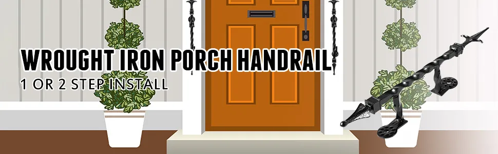 This porch railing is designed to provide a grab bar when people up or down porch stairs. Wrought iron material, powder-coated surface, and offers a vintage look that matches your house. Quick to install, and included all devices.