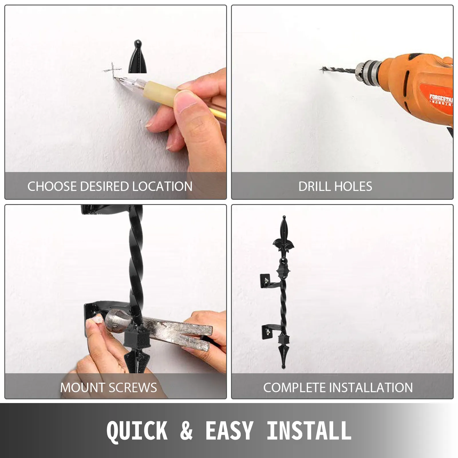 【STURDY IRON MATERIAL】- Length: 17.7"; Distance to the Wall: 3.5"; Color: Black; The stair railing is made of wrought iron, powder-coated for corrosion-resistant. Unique vintage style, easy to match house decor.