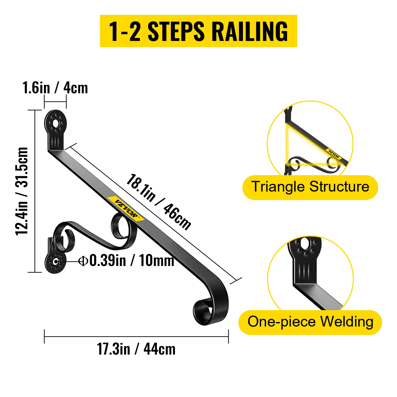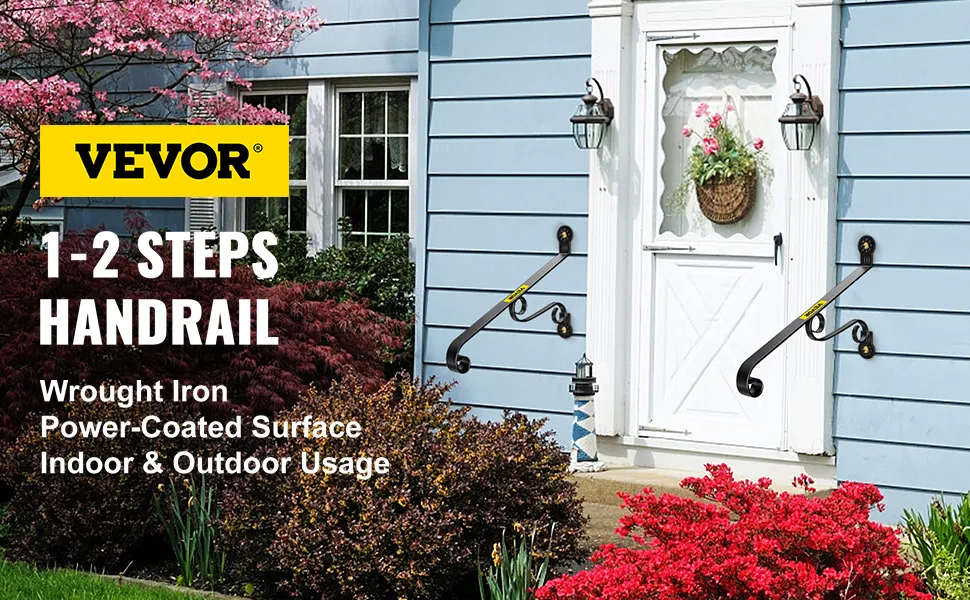 Our wrought iron handrail is built to suit your 1-2 steps. Triangle structure and one-piece welding ensure your high security and stability.