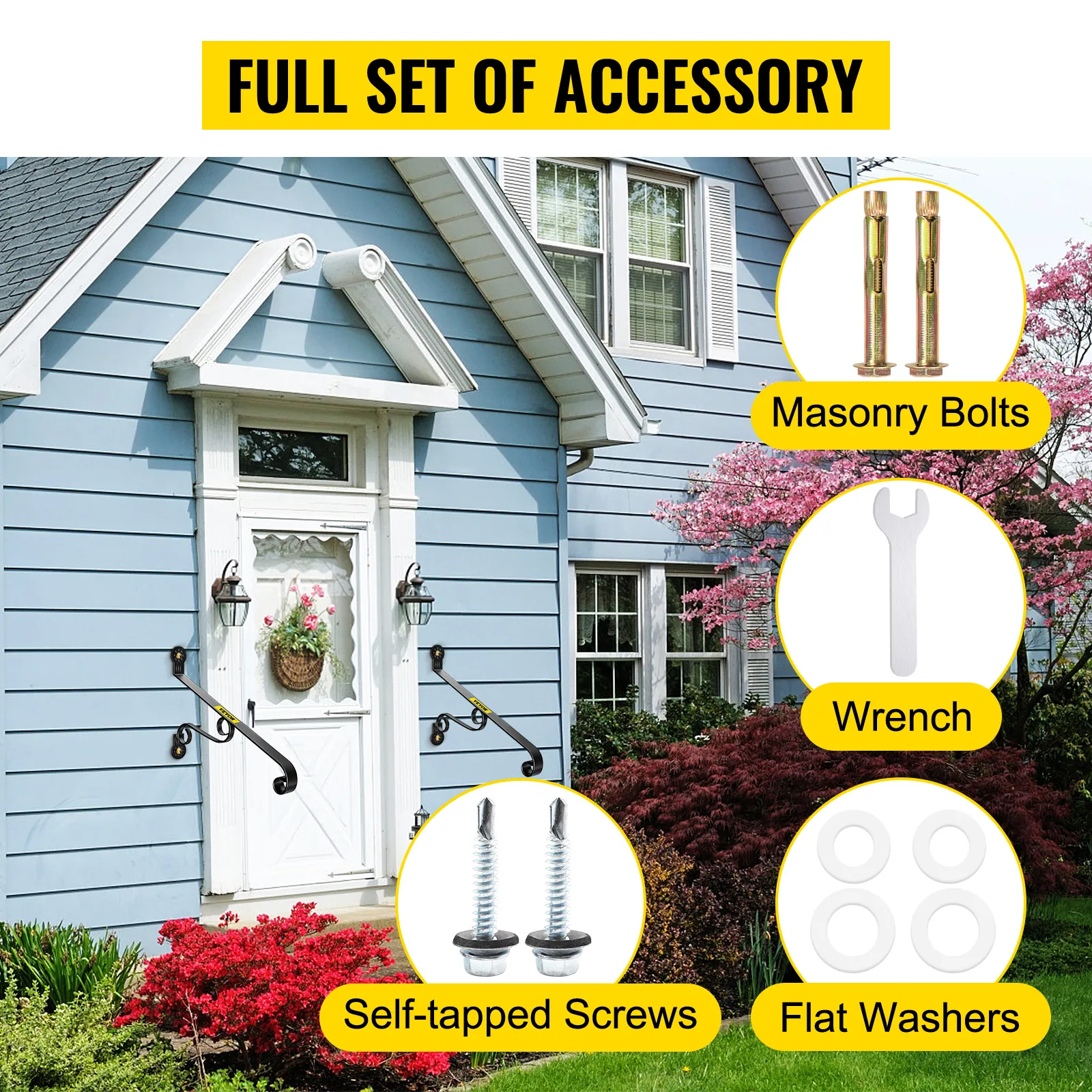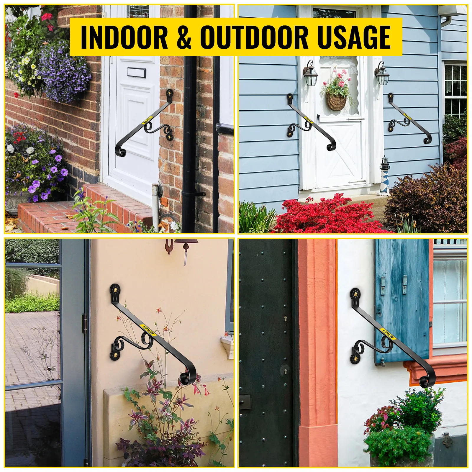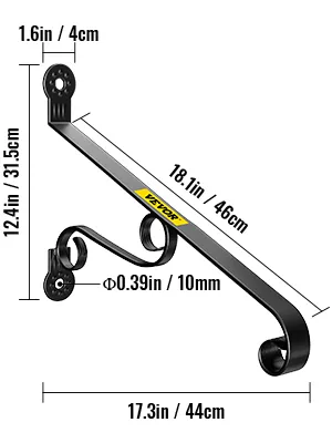 Sturdy Wrought Iron: Our grab rail for step is constructed with 0.2"/ 5 mm thickness real wrought iron, sturdy enough to support max. 200 lbs/ 90 kg loading without deformation. Comes with one-piece technique and powder coating technology, our front porch handrail has excellently smooth and comfortable performance, does not hurt your hands. What's more, the handrail is easy to clean and maintain.