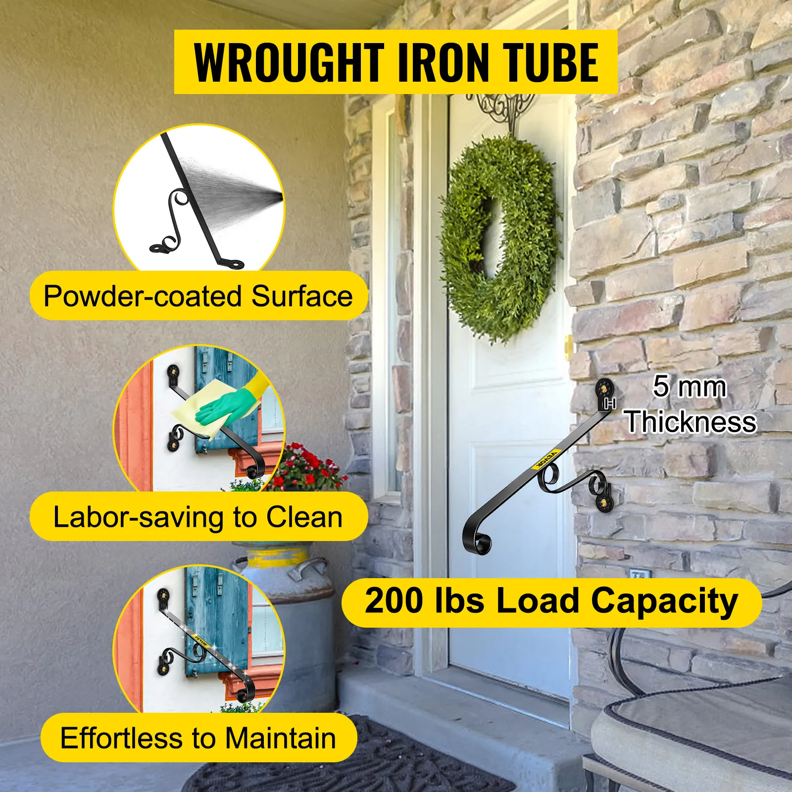 This wall mount handrail is made of wrought iron with powder-coated technology for rust-proof, scratch-proof, and comfortable grip. The comprehensive accessories are packed for time-saving installation. Perfect for steps to the porch.