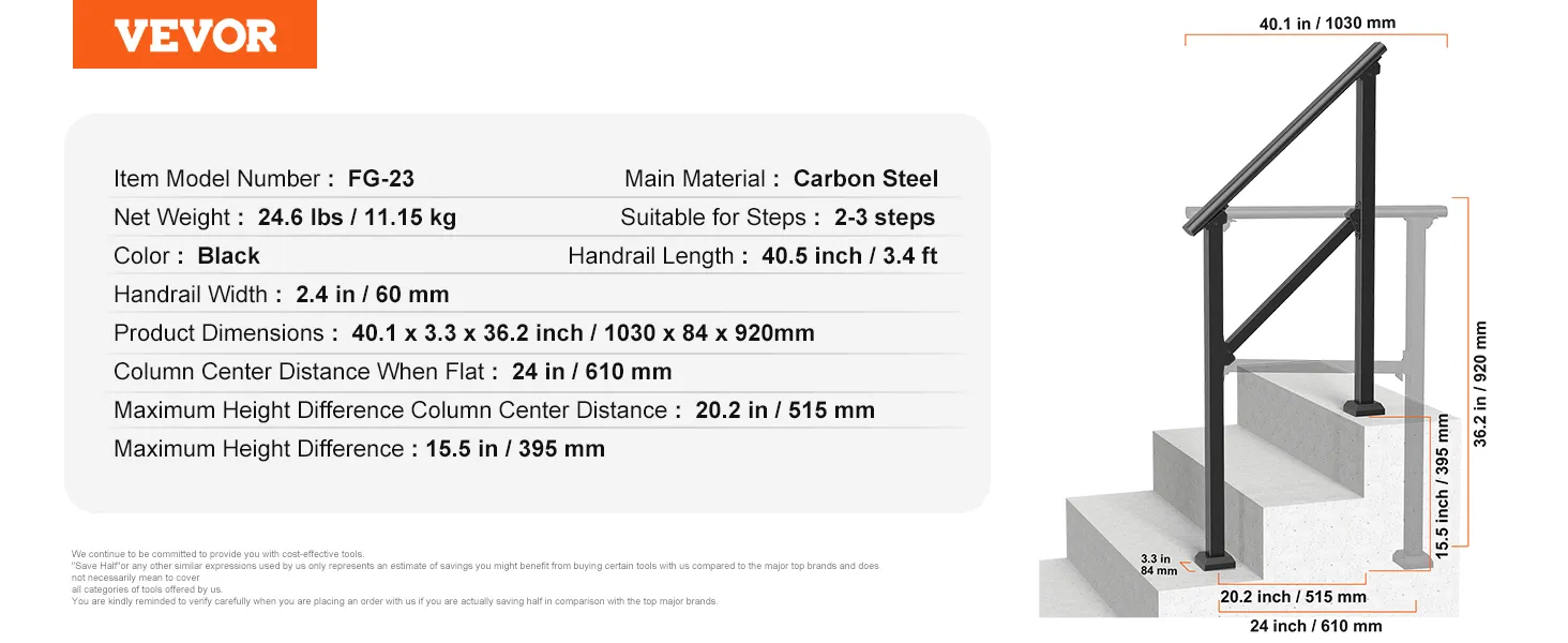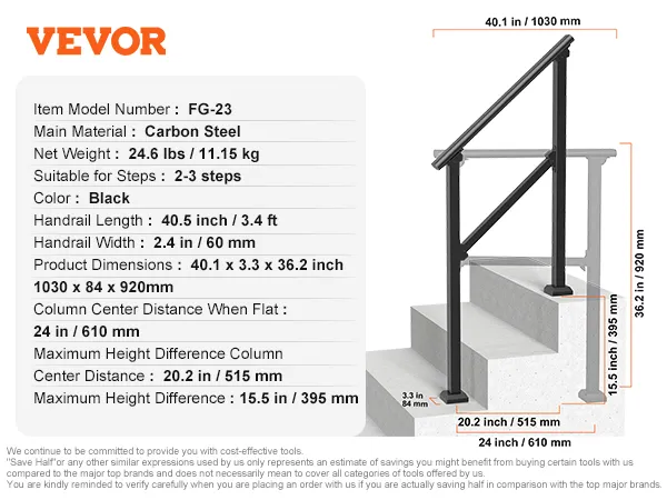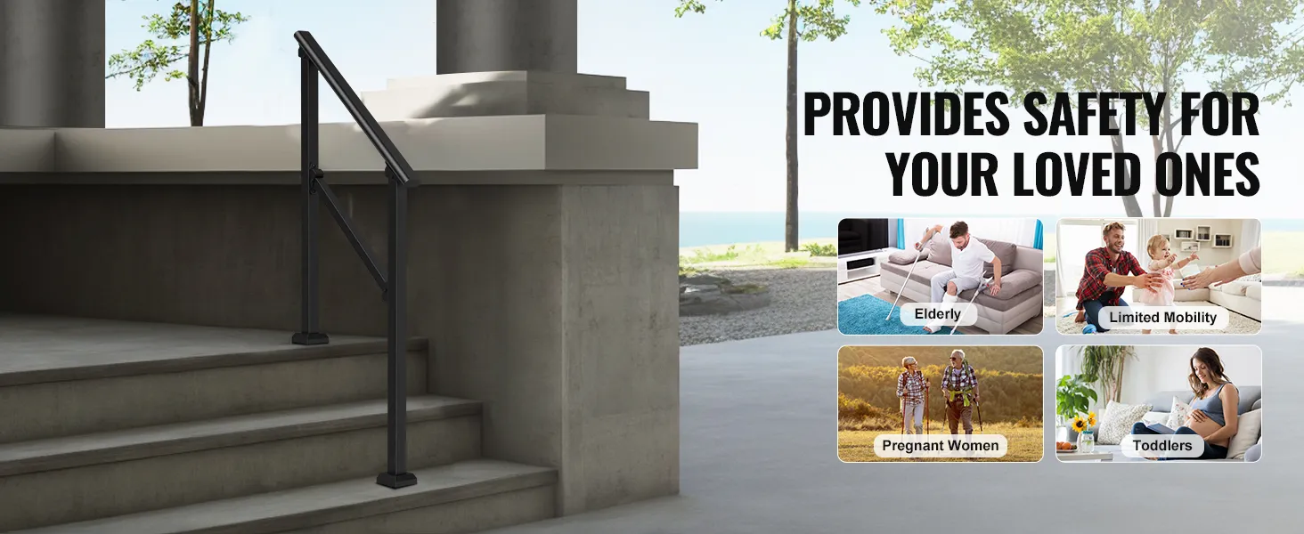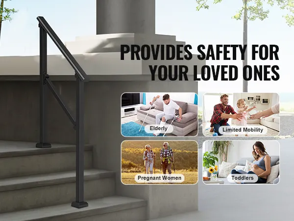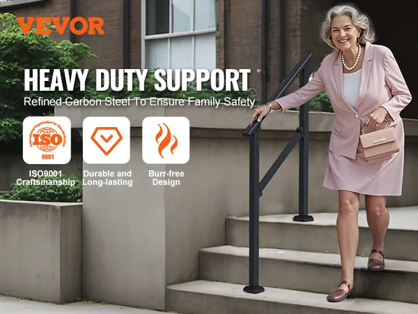 VEVOR Handrails for Outdoor Steps, 2-3 Step Stair Hand Rail Kit, Transitional Carbon Steel Railings with Installation Kit, Stair Rails for Seniors, Concrete Steps & Porch & Deck, Black Square Tube VEVOR Handrails for Outdoor Steps, 2-3 Step Stair Hand Rail Kit, Transitional Carbon Steel Railings with Installation Kit, Stair Rails for Seniors, Concrete Steps & Porch & Deck, Black Square Tube