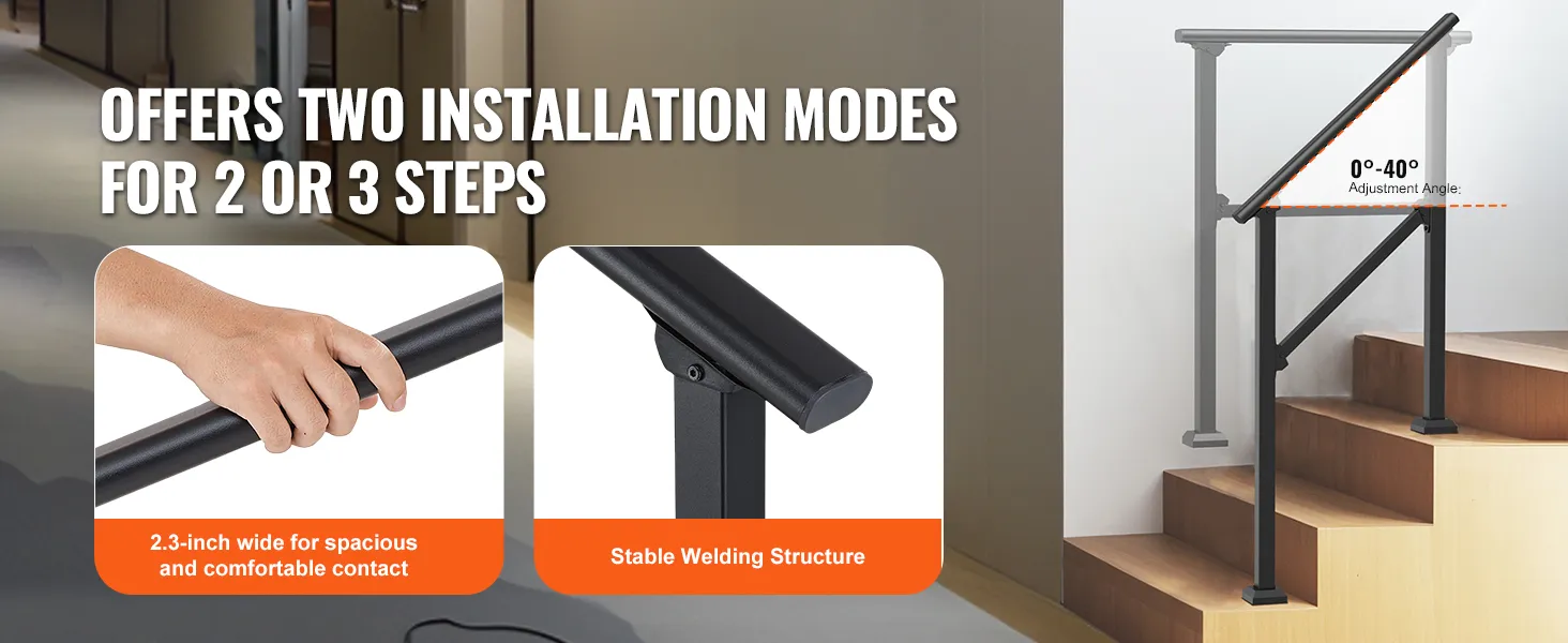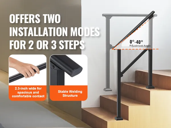 • Suitable for 1-2 Step Levels: With an adjustable angle from 0 to 40 degrees, this handrail is ideal for 1-2 step levels. It's perfect for a range of applications such as doorsteps, garage entrances, and garden railings.