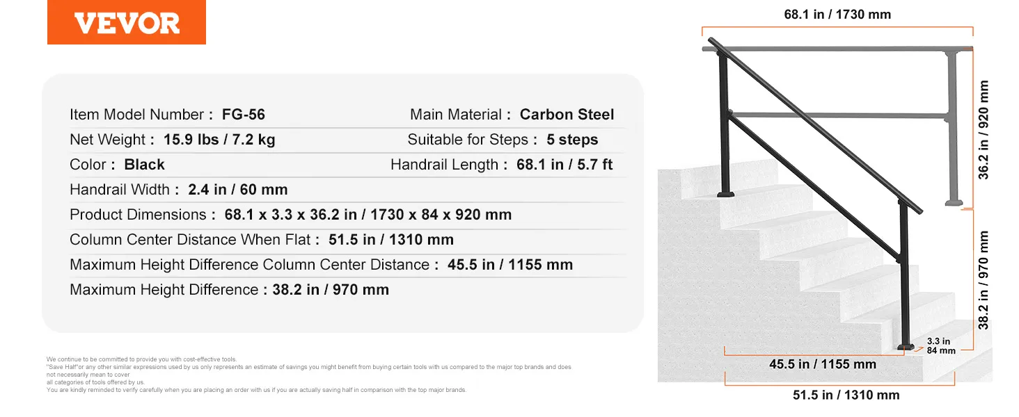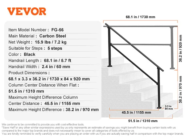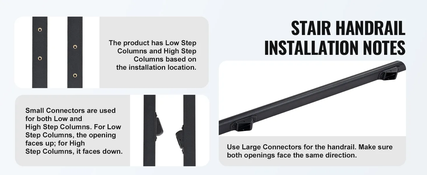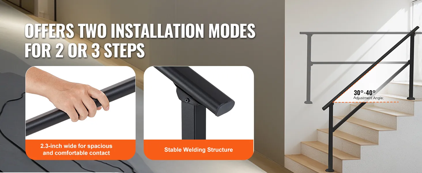 220 lbs Robust Load Capacity: This stair handrail is built to last, offering reliable safety for both elderly individuals and children. The thickened grip ensures comfort and security, making it easy for everyone, including pregnant women and the elderly, to use confidently. IMPORTANT TIPS:Before purchasing, please measure the maximum center distance and height difference of your stairs to ensure they match the handrail dimensions. Otherwise, the handrail may not be installable!!!!!!