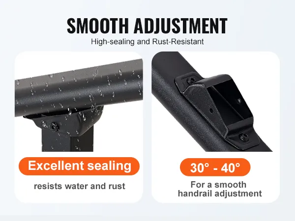 Crafted from premium materials, our handrails feature highly sealed connectors that is rustproof even in outdoor rain conditions. The smooth angle adjustment ensures versatility for various settings.