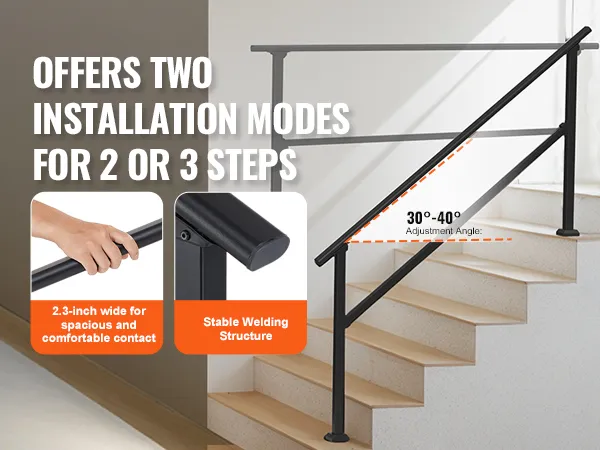 The handrail's angle can be adjusted to fit the number of stair steps, making it adaptable to your staircase requirements.