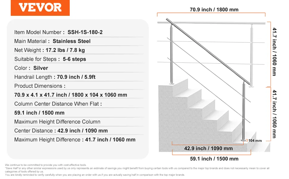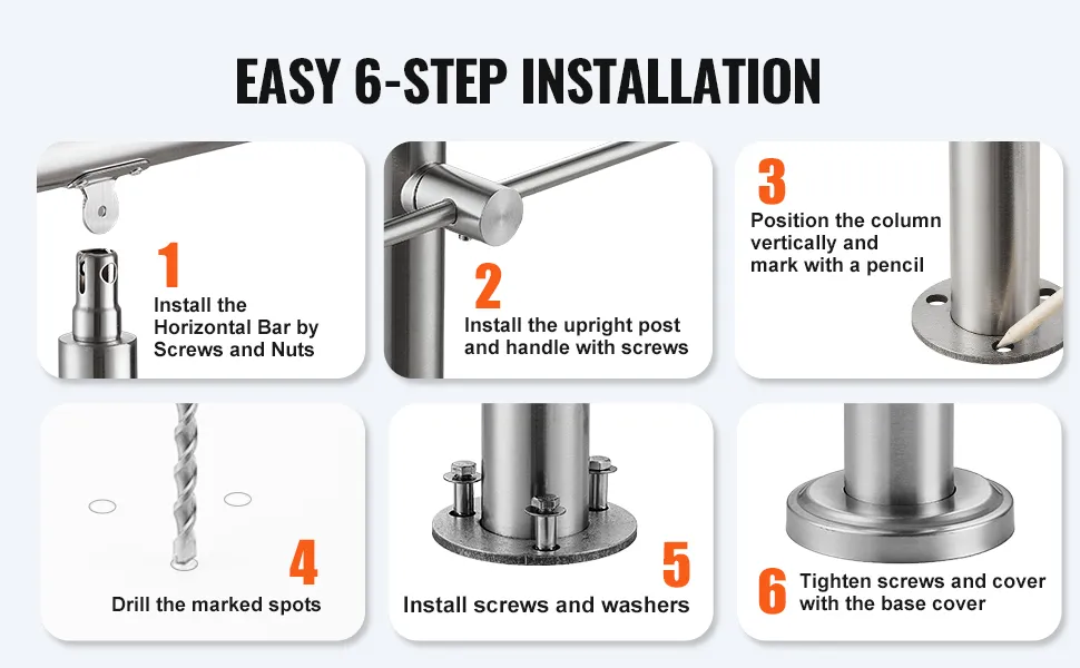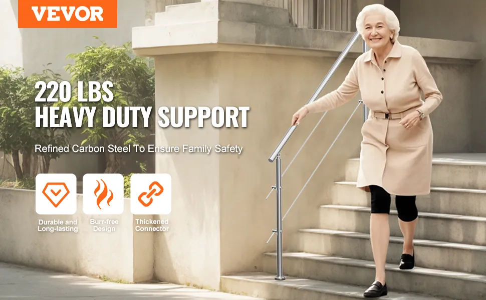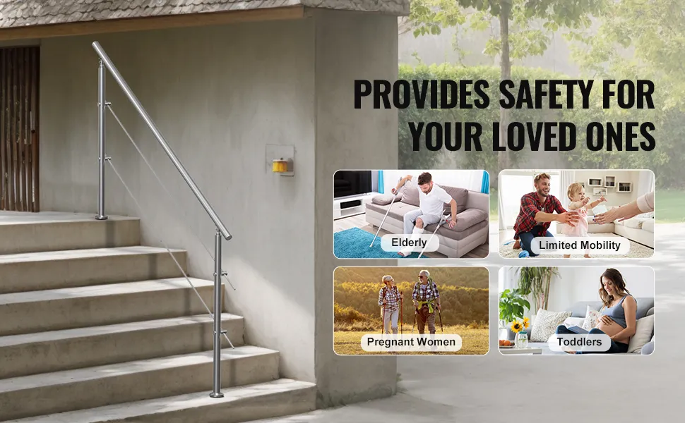 Versatile Use: This outdoor stair railing can be installed on concrete, wood floors, tiles, marble, and other solid surfaces. Its unique design complements various stair types, ensuring both functionality and style.