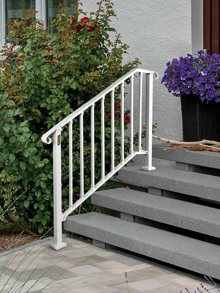 Beautify your outdoor stairs with VEVOR transitional handrails. It has classic curly sides that give an elegant touch to your porch railing. Its handrails for concrete steps come with a chic white power-coated and smooth exterior, so you can quickly clean them with cloth or water. Its high-quality finish to its joints and connections ensures that this stair handrail provides an eye-catching appearance to your home.
