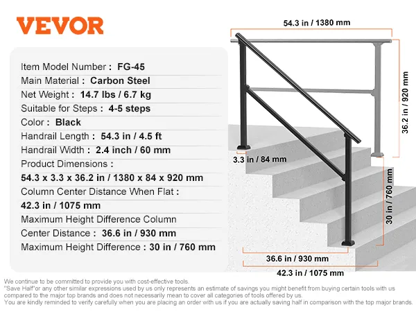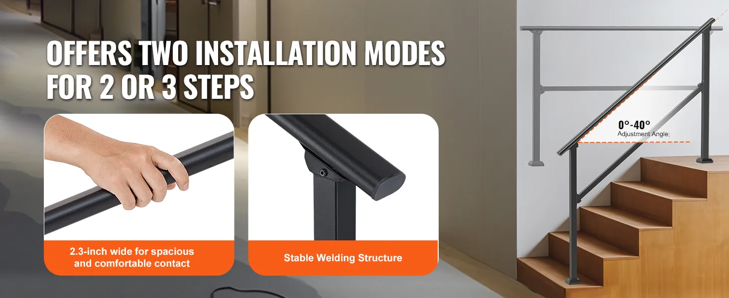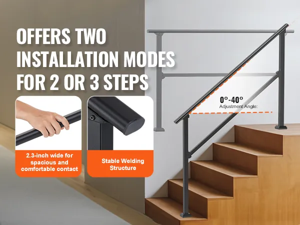 Suitable for 4-5 Step Levels: With an adjustable angle from 0 to 40 degrees, this handrail is ideal for 4-5 step levels. It's perfect for a range of applications such as doorsteps, garage entrances, and garden railings.