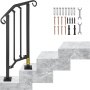 VEVOR Outdoor Stair Railing, Fit 1 or 2 Steps Aluminum Handrailing, Front Porch Flexible Transitional Handrail, Picket Step Rail with Installation Kit, for Concrete or Wooden Stairs, Black