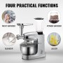 VEVOR 4-in-1 stand mixer combines powerful performance and sleek design to offer superior product whether cooking, baking, or blending. This mixer has a 5.3 qt stainless steel bowl, and meat grinder attachments. The 4-in-1 food blender and mixer allow you to perform multiple tasks at once. A Powerful 1000 W motor and variable speeds provide freshness and smoothness of the food. It is widely used in household and commercial kitchens.