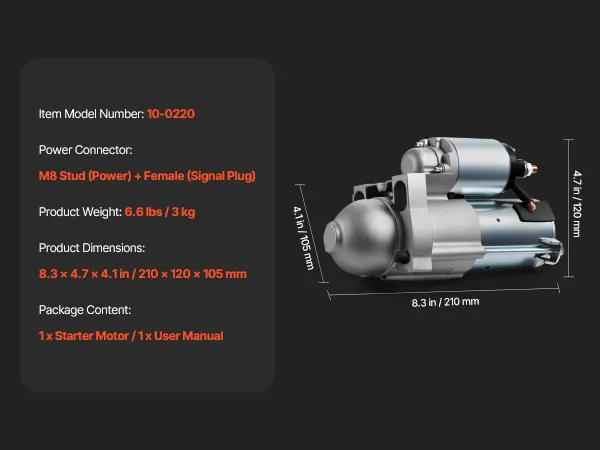 This OEM starter is equipped with premium components, like the precision gear, high-temperature copper coil, and efficient carbon brush, to give you the power you need to start your engine smoothly—no matter the weather.