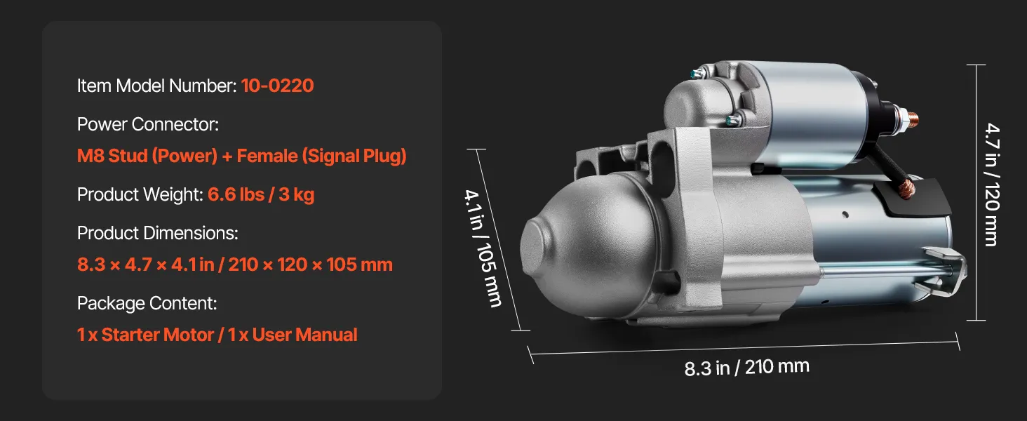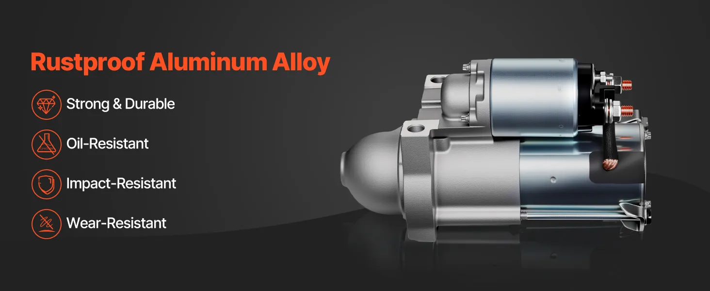 Rustproof Aluminum Alloy: The OEM starter motor is made of industrial-grade aluminum alloy with precise manufacturing processes, ensuring long-lasting use with fewer failures or damages. It resists oil damage, improving the impact and wear resistance