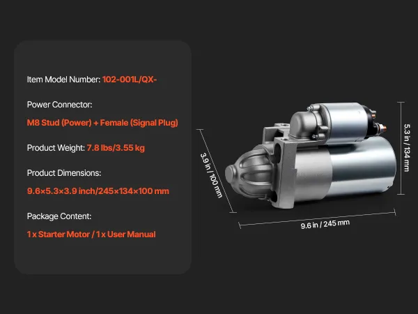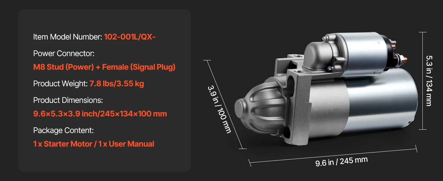 This OEM starter is equipped with premium components, like the precision gear, high-temperature copper coil, and efficient carbon brush, to give you the power you need to start your engine smoothly—no matter the weather.