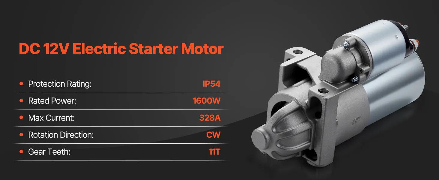Designed for multiple vehicle models (see compatibility list on the page), this 12V starter delivers reliable power with a high-performance DC motor and IP54 protection. Made from rust-resistant aluminum alloy, it's built to last while providing quick, smooth starts for your vehicle.