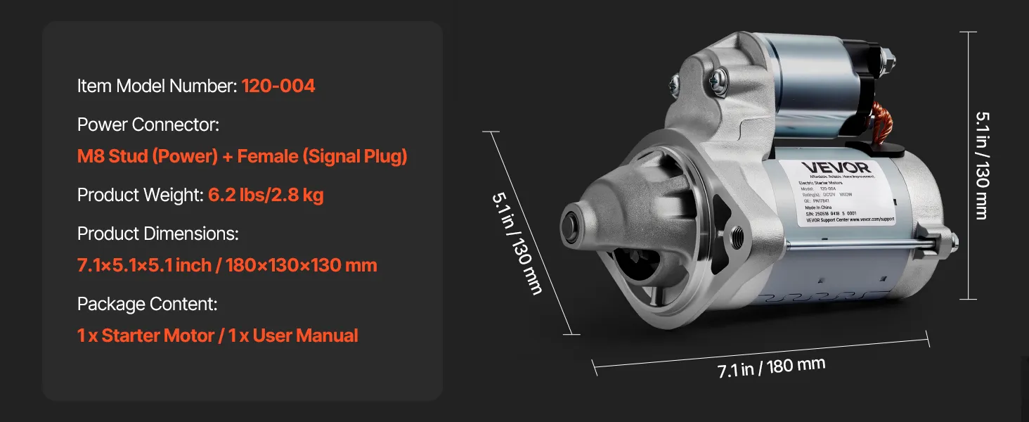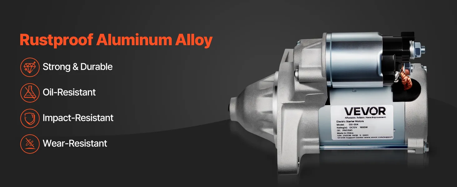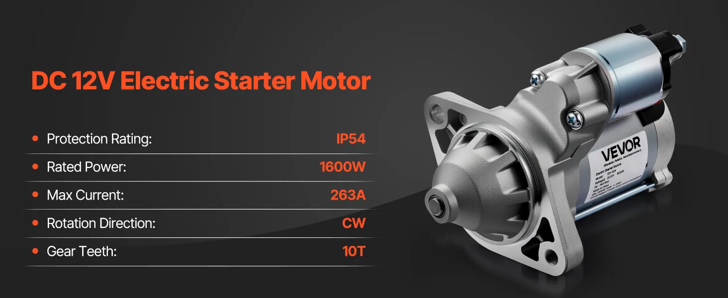 Designed for multiple vehicle models (see compatibility list on the page), this 12V starter delivers reliable power with a high-performance DC motor and IP54 protection. Made from rust-resistant aluminum alloy, it's built to last while providing quick, smooth starts for your vehicle.