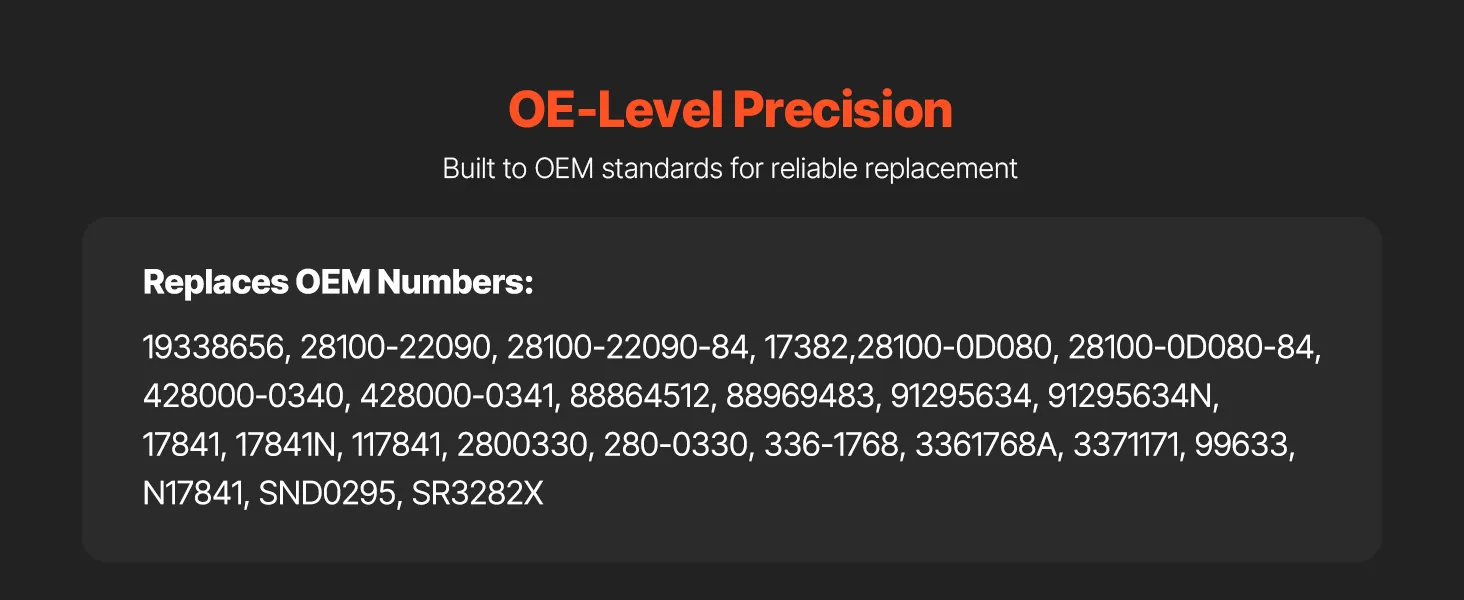 This OEM starter is equipped with premium components, like the precision gear, high-temperature copper coil, and efficient carbon brush, to give you the power you need to start your engine smoothly—no matter the weather.