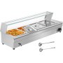 - Whether you're serving soup, spaghetti, stew, or oatmeal, this electric food warmer with tempered glass shield is ideal for your buffet, restaurant, or snack bar. The steam table for restaurants, including multiple pans with lids, is built with stainless steel, ensuring long-lasting use and easy cleaning. The extensive capacity allows this electric buffet food warmer to heat more foods at one time. Its adjustable temperature from 86℉ to 185℉ keeps dishes warm as you wish.