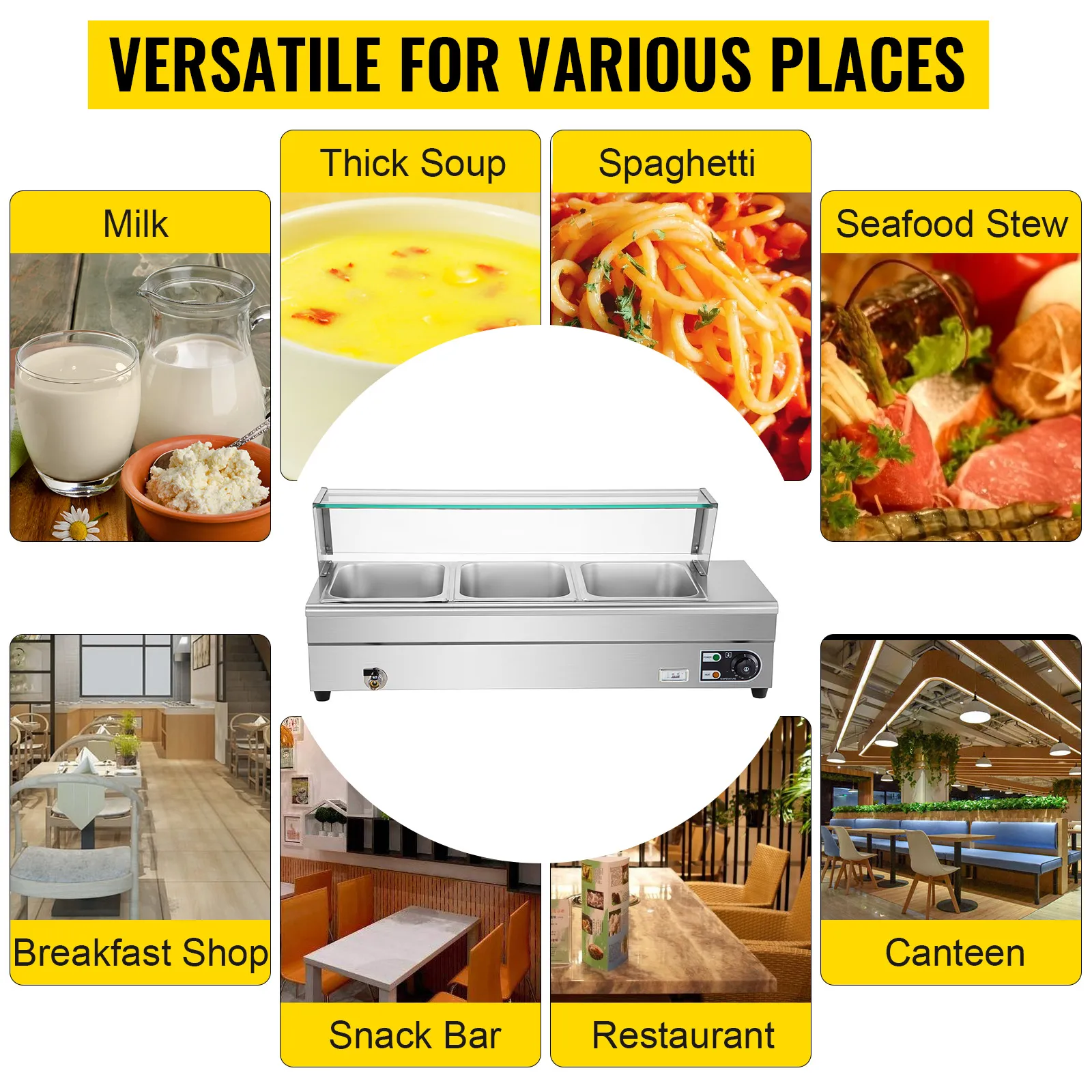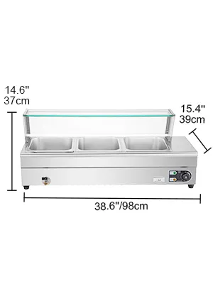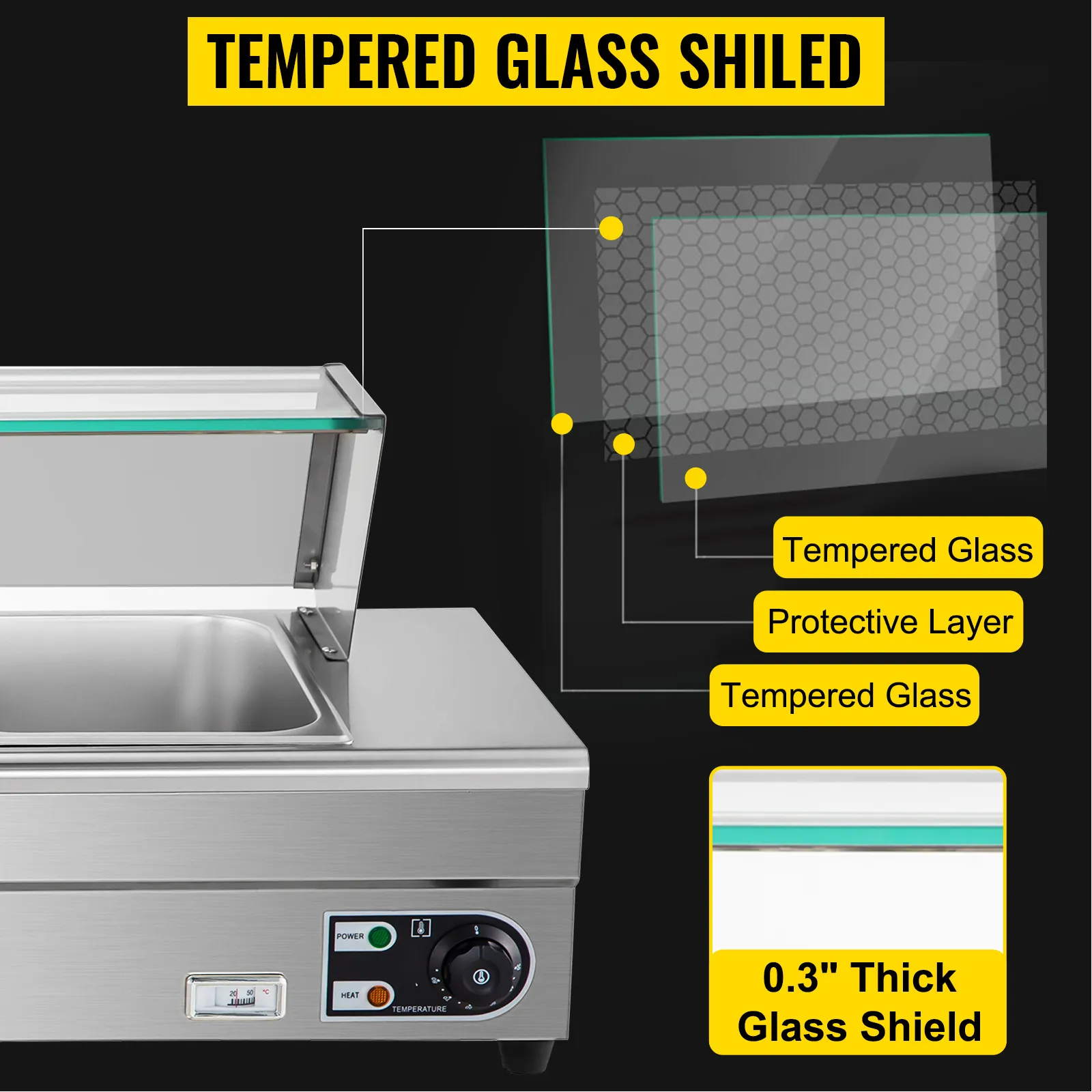 Our buffet soup warmer comes with a detachable tempered glass shield, 0.3-inch (8 mm) in thickness. Through the glass shield, the state of food can be directly observed, while ensuring food hygiene.