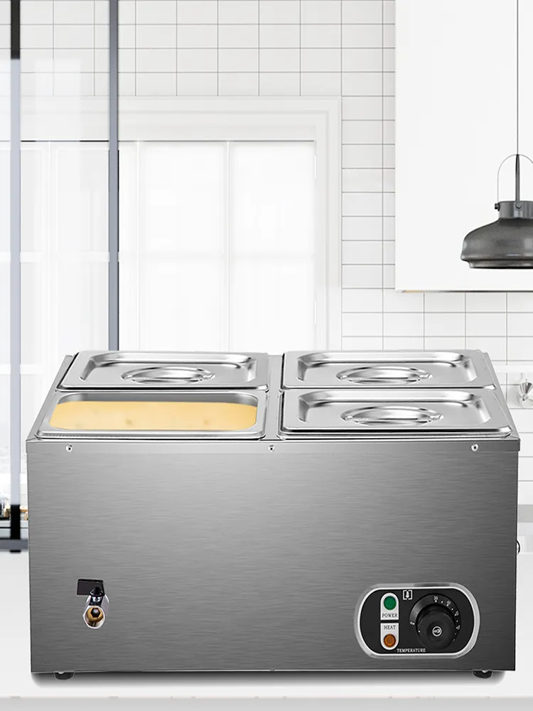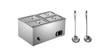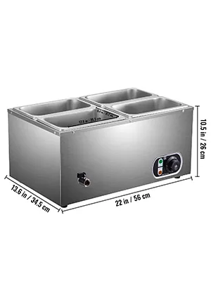 The Restaurant food warmer, including four pans and lids, is made of thickened food-grade stainless steel, durable and easy cleaning. Constant temperature control (30-85℃) keeps dishes warm as you wish. The catering food warmers are widely used to keep dishes warm in breakfast shops, snack bars, restaurants, school cafeterias, etc.