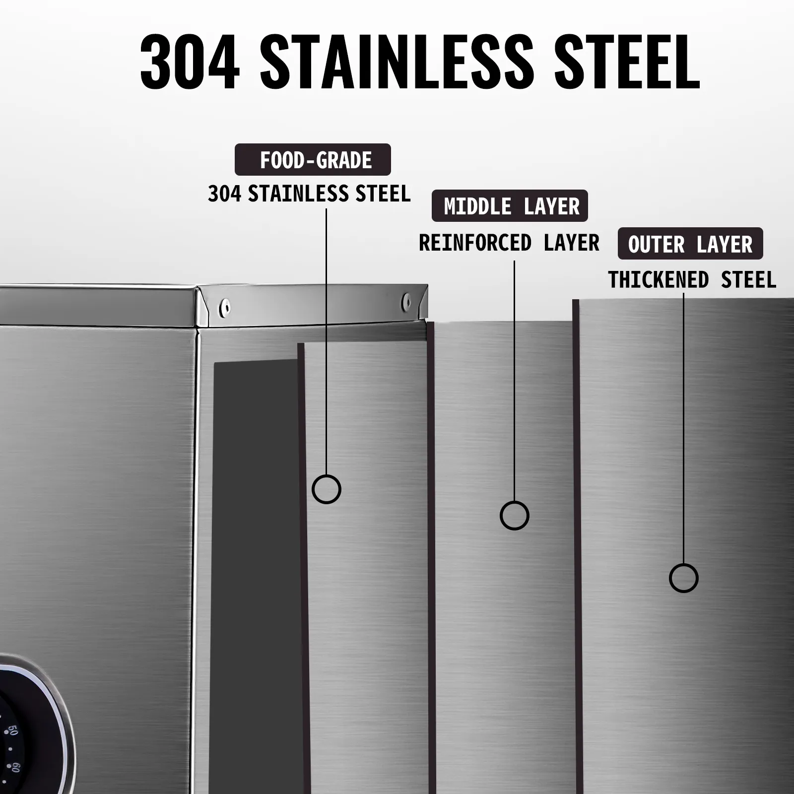 This food well features 1500 watts of power for outstanding heating potential, and its all 304 stainless steel construction solid and robust, ensuring long-lasting durability.