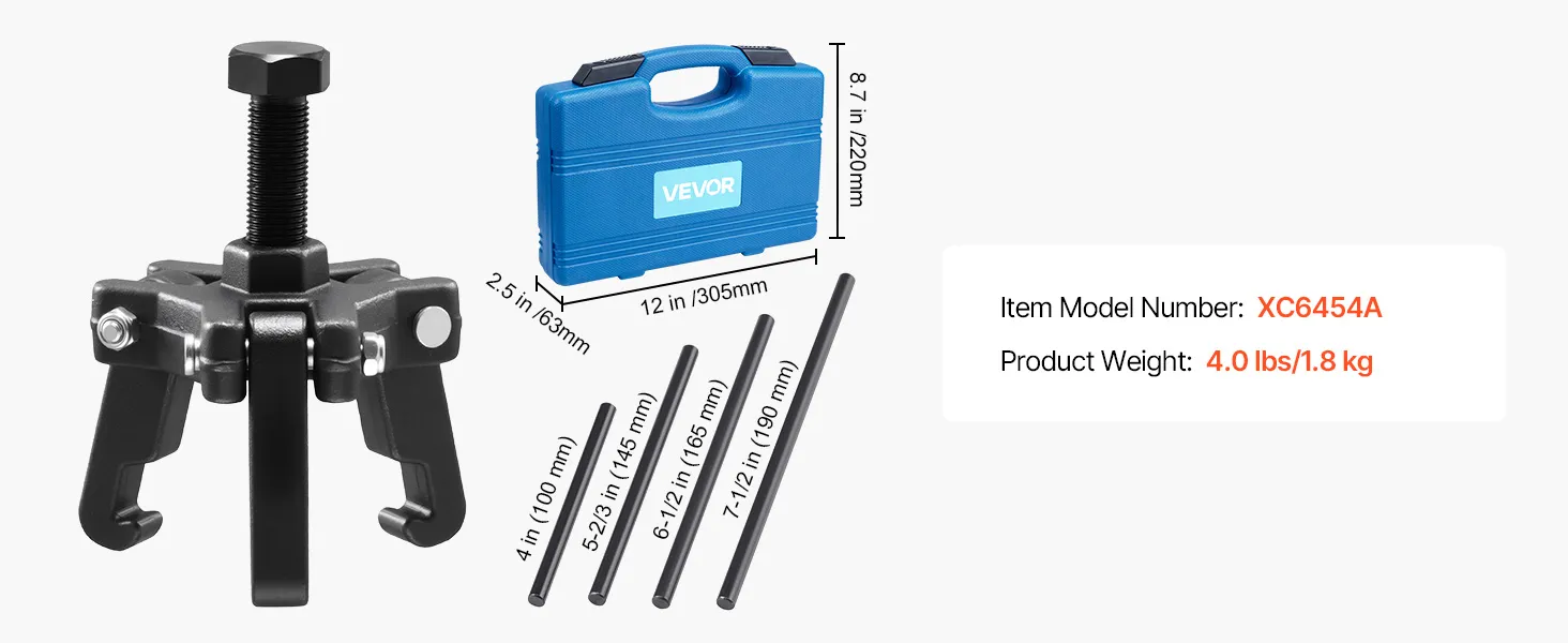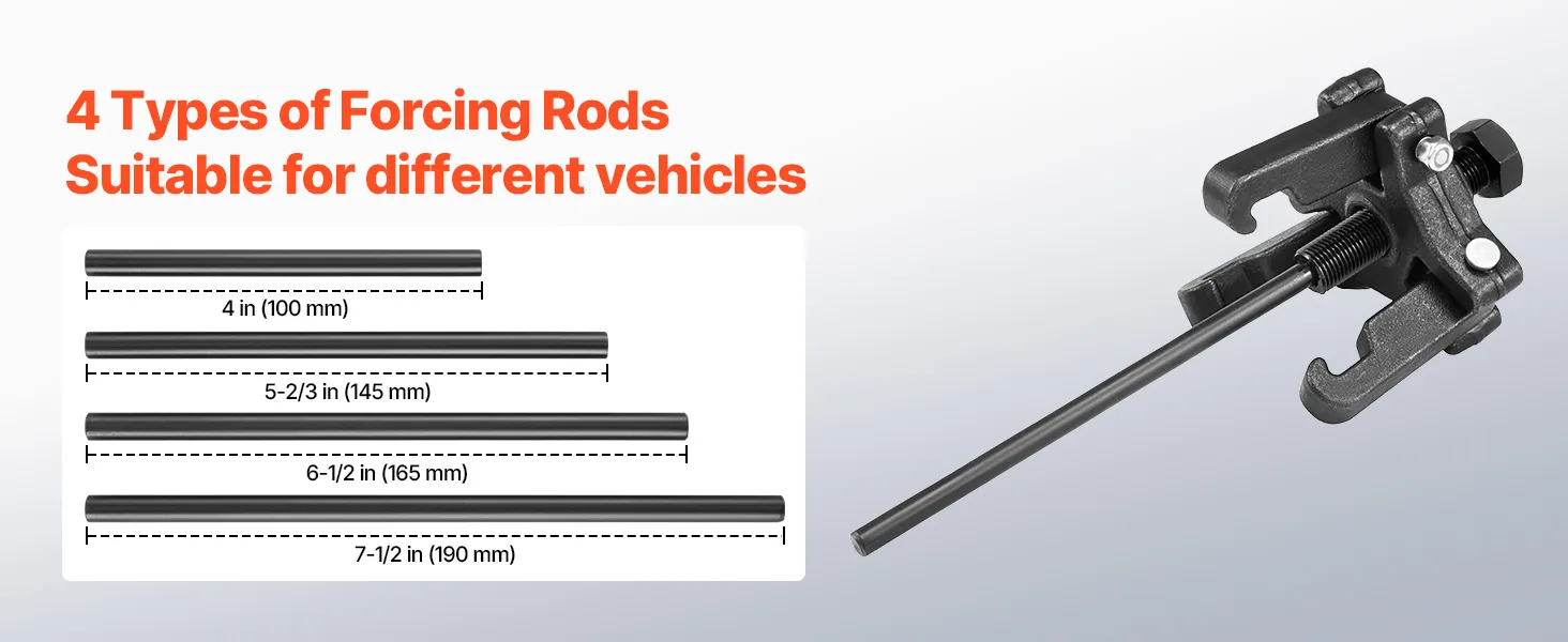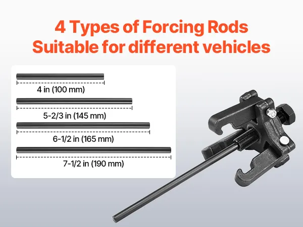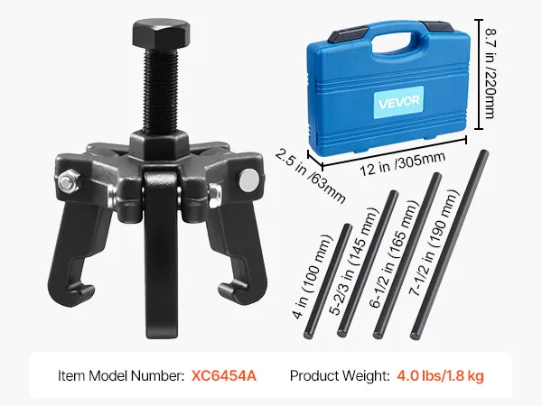 Four Puller Rod Sizes: The harmonic balancer pulley puller set includes four puller rods: 4 in (100 mm), 5-2/3 in (145 mm), 6-1/2 in (165 mm), and 7-1/2 in (190 mm), letting you reach deeper and adapt to different harmonic balancer types