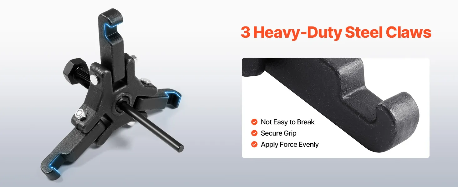 Three-Jaw Design: This harmonic balancer puller set comes with a secure three-jaw puller that grips tightly and distributes force evenly. The jaws stay firmly in place during removal for safer and easier operation