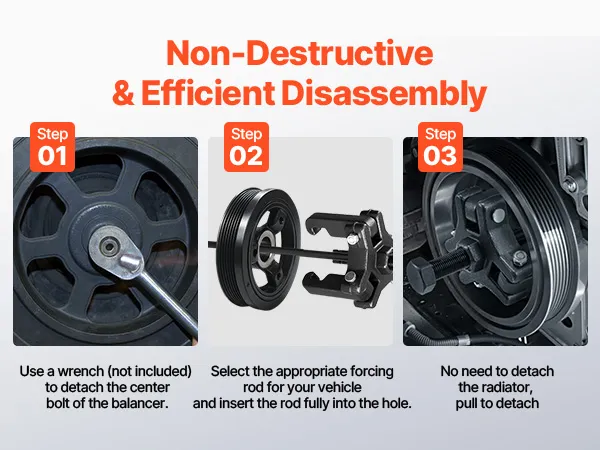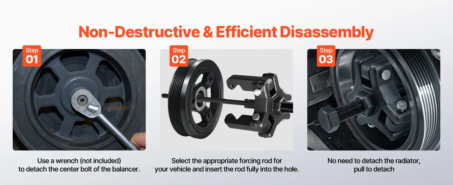 Wide Compatibility: Designed for various vehicle models, this harmonic balancer puller kit allows for efficient, damage-free removal without taking off the radiator