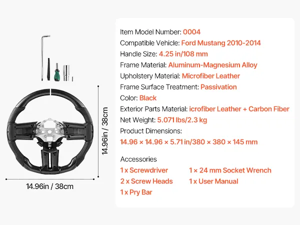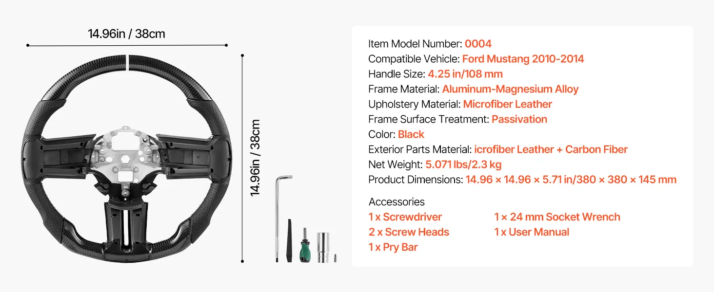 Vehicle-Specific Fit: Precisely compatible with 2010-2014 Ford Mustang, this steering wheel installs conveniently and improves your driving experience effortlessly