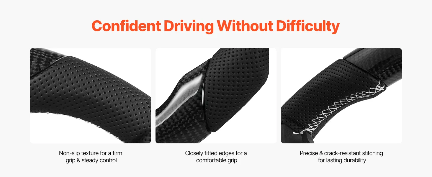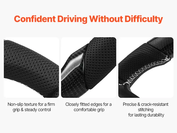 Our steering wheel replacement allows you to drive confidently. The non-slip texture enables easy and firm grip, avoiding slippage while driving; the tightly fitted edges ensure a comfortable grip; the precise stitching withstands cracking, ensuring long-term durability.