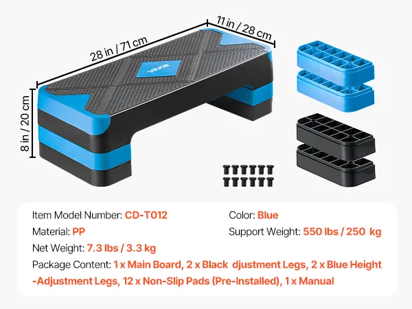VEVOR Aerobic Exercise Step Platform, 28-Inch Workout Aerobic Stepper, Height Adjustable Fitness Training Step Deck Trainer with 4 Risers, Non-Slip Surface Bench for Home Gym Cardio Strength, Blue VEVOR Aerobic Exercise Step Platform, 28-Inch Workout Aerobic Stepper, Height Adjustable Fitness Training Step Deck Trainer with 4 Risers, Non-Slip Surface Bench for Home Gym Cardio Strength, Blue