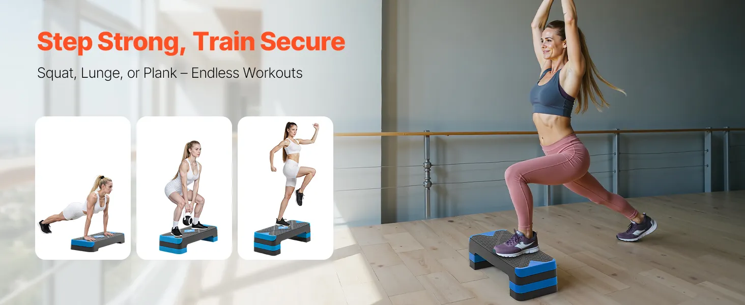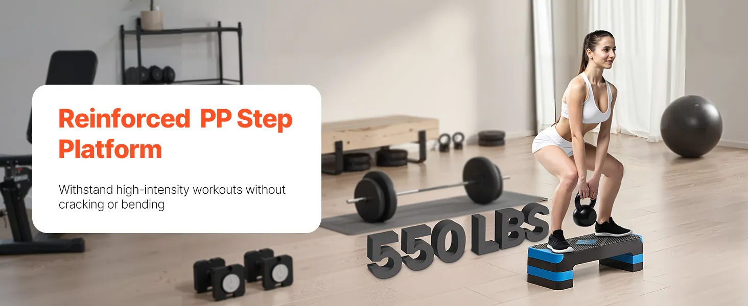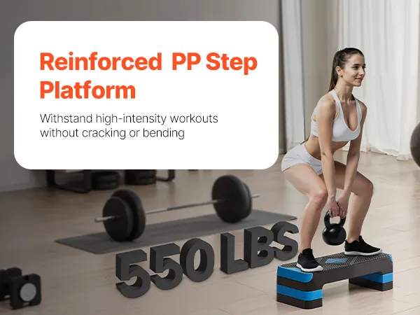• Reinforced Construction: This step aerobic platform is built to handle jumps, squats, and intense workouts without cracking or bending. The high-density PP base ensures long-term durability for home gyms