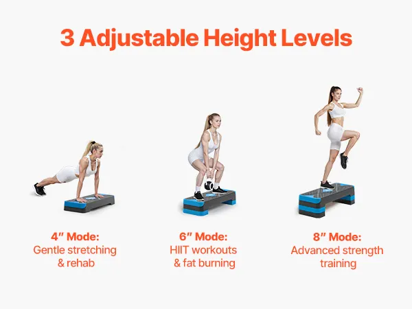 Train smarter with 4 in (low-impact rehab), 6 in (HIIT fat burn), or 8 in (muscle-building jumps). Switch levels in seconds, no tools needed!