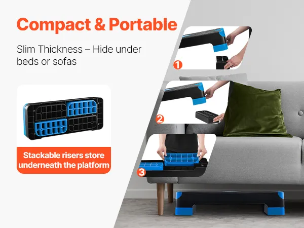• Compact & Space-Saving: The stackable risers can be easily stored underneath the exercise step that you can store it under your bed, sofa or corner. Ideal for small apartments or shared spaces