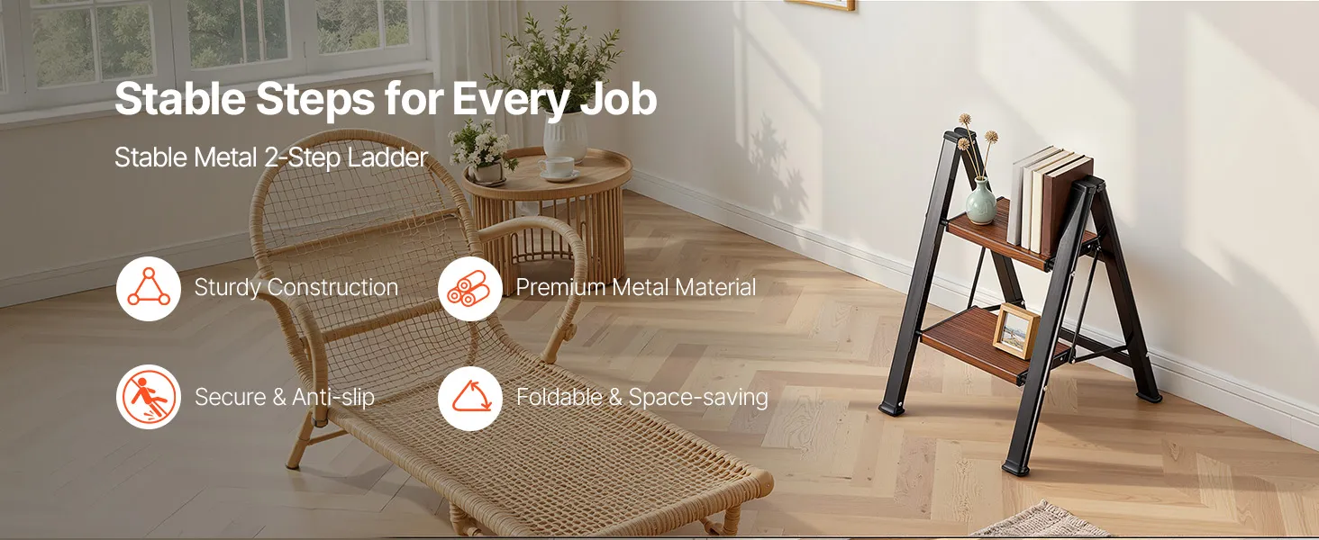 Suitable for home repairs, cleaning, organizing, this compact step ladder provides stable, slip-resistant support, helping you easily reach high areas.