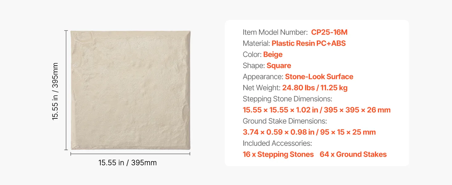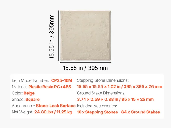 This 16-pcs garden stepping stones is made from weather-resistant PC and ABS resin, built to withstand sun, rain, and freezing temperatures without warping or fading. Each stepping stone includes 4 ground stakes and a reinforced base for extra stability—ideal for homes with kids and pets.