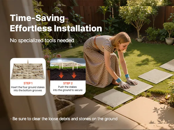 No tools required—simply insert four ground stakes into the slots underneath each stone. Easy enough for one person to install, making it ideal for DIY enthusiasts and first-time gardeners alike.